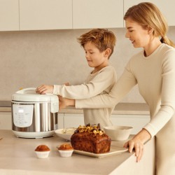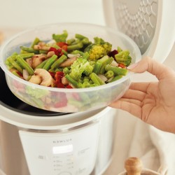 Programmez-le jusquà 24 heures pour que le repas soit prêt quand vous voulez et si vous avez besoin de quil garde le repas au chaud un peu plus longtemps, ne vous inquiétez pas. Lorsque le robot de cuisine multifonction termine la cuisson, il maintien le repas chaud sans détériorer ni la qualité, ni la texture, ni le goût.