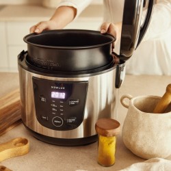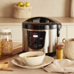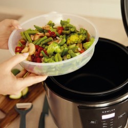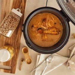 Programmez-le jusquà 24 heures pour que le repas soit prêt quand vous voulez et si vous avez besoin de quil garde le repas au chaud un peu plus longtemps, ne vous inquiétez pas. Lorsque le robot de cuisine multifonction termine la cuisson, il maintien le repas chaud sans détériorer ni la qualité, ni la texture, ni le goût.