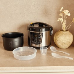 Grâce à sa capacité de 5 litres, vous pourrez cuisiner pour 3-4 personnes sans problème. Ne vous inquiétez pas si les aliments collent au récipient, parce quil a un revêtement 100% anti-adhérent.
