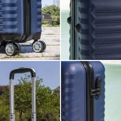 • SÉCURITÉ ET CONFORT MAXIMUM. La valise cabine est dotée d'une serrure à combinaison latérale à 3 chiffres, ainsi que de 4 doubles roues rotatives multidirectionnelles qui glissent en douceur sur des surfaces lisses accompagnant le mouvement.