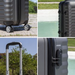 • SÉCURITÉ ET CONFORT MAXIMUM. La valise cabine est dotée d'une serrure à combinaison latérale à 3 chiffres, ainsi que de 4 doubles roues rotatives multidirectionnelles qui glissent en douceur sur des surfaces lisses accompagnant le mouvement.