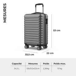 • VALISE DE VOYAGE LÉGÈRE ET RÉSISTANTE: Profitez de votre valise cabine sur la plupart des compagnies aériennes grâce à ses mesures de 53x33,5x22cm. D'une capacité de 34,5 L. et d'un poids maximum de 13 Kg.