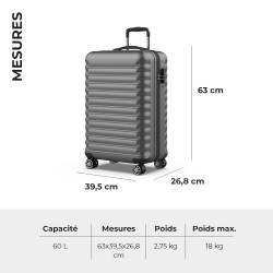 • VALISE DE VOYAGE LÉGÈRE ET RÉSISTANTE: Profitez de votre valise moyenne moyenne recommandée pour les voyages de plus d'une semaine grâce à ses mesures de 63x39,5x26,8cm. D'une capacité de 60 L. et d'un poids maximum de 18 Kg.
