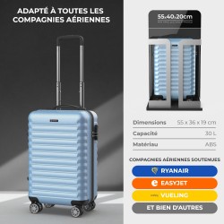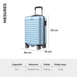 • VALISE CABINE 55x36x19 cm d'une capacité de 30L et d'un poids maximum de 10 Kg, idéale pour voyager sur toutes les compagnies aériennes, dont Ryanair, Vueling Iberia ou EasyJet.