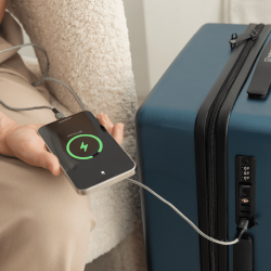 • PORT DE CHARGE USB ET 4 ROUES DOUBLES MULTIDIRECTIONNELLES. Ne manquez pas de batterie à tout moment. Grâce au port USB de la valise cabine, vous pouvez recharger tous vos appareils et avoir toujours votre casque sans fil ou votre téléphone portable à portée de main. Ses 4 roues doubles silencieuses avec revêtement en caoutchouc blanc permettent une glisse parfaite.