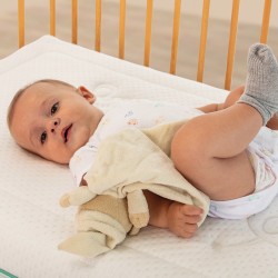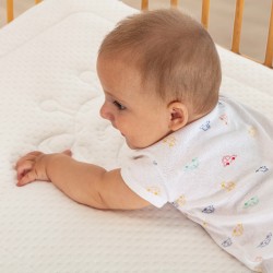 Tissu matelassé thermorégulateur premium qui permet l'adaptation parfaite du matelas bébé au corps et offre la douceur idéales pour protéger votre bébé des irritations cutanées.