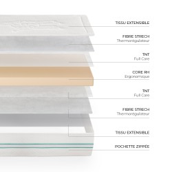 Noyau Adapt Foam de haute densité pour offrir un confort équilibré en termes d'adaptabilité, de fraîcheur et de sécurité. Grâce aux technologies innovantes, votre bébé reposera tranquillement sur ce matelas pour berceau.