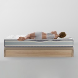 FERMETÉ MOYEN-ÉLEVÉ GRÂCE À SON NOYAU GRAVITAS. Le matelas du lit gigogne maintient la colonne vertébrale alignée pendant que vous vous reposez, car il s'adapte parfaitement à la courbure du corps. Le noyau à pores ouverts résistant, respirant et durable lui confère une fermeté moyenne-élevée idéale pour une hygiène posturale correcte tout au long de la nuit.