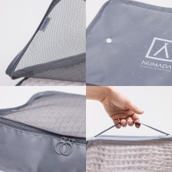• Maille semi-transparente sur le devant des cubes d'emballage pour trouver facilement vos vêtements et les garder aérés. Ainsi, vous saurez à tout moment où se trouve chacune de vos affaires, sans avoir à défaire encore et encore la valise.