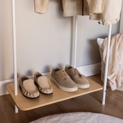 • Comprend une étagère multifonction. Dans la zone inférieure, le porte-manteau ânes vêtements comprend une étagère en bois pour pouvoir mettre des chaussures aux paniers de rangement. Ainsi, vous obtiendrez non seulement vos vêtements plus visibles et bien rangés, mais aussi vos chaussures.