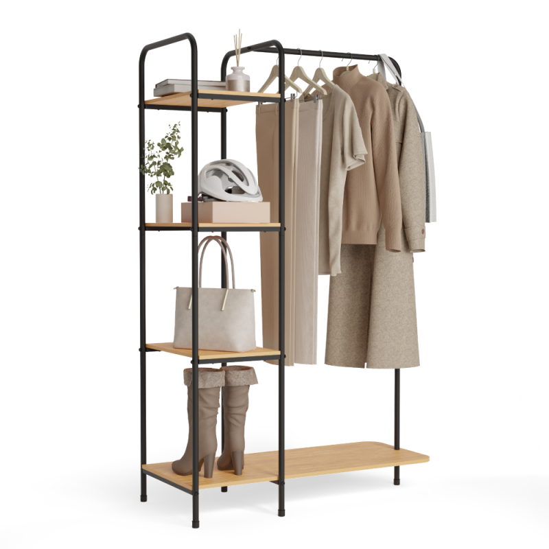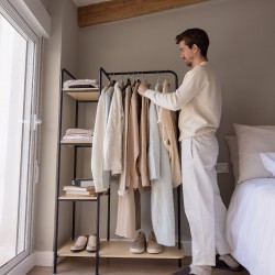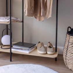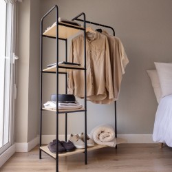 • Design compact avec grand espace de rangement réparti en 4 hauteurs. Avec des dimensions de 92 x 42 x 150 cm (largeur x profondeur x hauteur) l'âne vêtement robuste dispose d'un espace de 139 cm pour accrocher des vêtements longs et 4 étagères en bois de grande taille (42 x 28 cm).