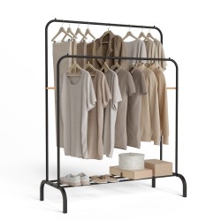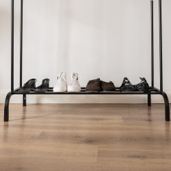 • Barres transversales latérales et porte-chaussures. Les traverses latérales des deux côtés de l'âne vêtements résistants offrent un espace supplémentaire pour les écharpes ou autres accessoires. Comprend une étagère supplémentaire sur la partie inférieure pour une utilisation comme meuble à chaussures ou espace de rangement.
