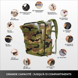 • ESPACE SÉPARÉ POUR CHAUSSURES, ORDINATEUR PORTABLE 15" ET LIQUIDES. Ce sac 40x20x25 Ryanair dispose de 13 compartiments ; une poche étanche pour mettre des liquides et produits de soins personnels, une poche protégée contre les chocs pour ranger l'ordinateur, un espace spécifique pour les vêtements, une poche avec accès indépendant pour ranger les baskets et de multiples poches extérieures et intérieures pour accessoires et documents.