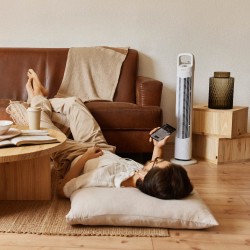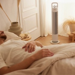 • MINUTEUR 120 MIN. Grâce à sa minuterie intelligente, vous pouvez programmer le ventilateur de tour sans pales de la manière la plus simple et intuitive jusqu'à deux heures et ainsi vous débarrasser tout en économisant sur votre facture d'électricité.