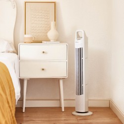 • DESIGN SÛR ET FACILE À TRANSPORTER. Transportez confortablement ce ventilateur tour sans pales d'une pièce à l'autre avec sa poignée de transport, entièrement intégré dans le design. Pas besoin de faire de gros efforts.