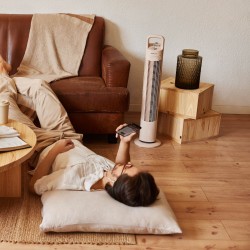 • DESIGN SÛR ET FACILE À TRANSPORTER. Transportez confortablement ce ventilateur tour sans pales d'une pièce à l'autre avec sa poignée de transport, entièrement intégré dans le design. Pas besoin de faire de gros efforts.