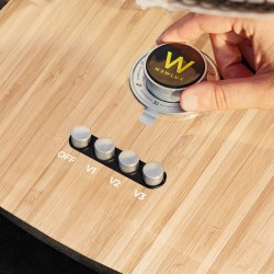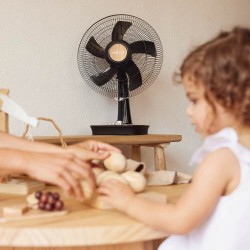 • BASE DE GRANDE STABILITÉ AVEC CONTRÔLE ROTATIF. Sa large base permet au ventilateur de bureau d'être assis sur n'importe quelle table avec la plus grande solidité, et ne sera pas altéré par des mouvements ou des vibrations.