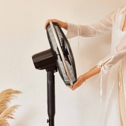 • GRANDE PUISSANCE ET FRAÎCHEUR MAXIMALE avec le bruit minimal. Profitez d'un maximum de silence et de confort, sans renoncer à la puissance grâce à la technologie PowerWind du ventilateur sur pied avec télécommande, qui fournit une grande puissance de 50W.